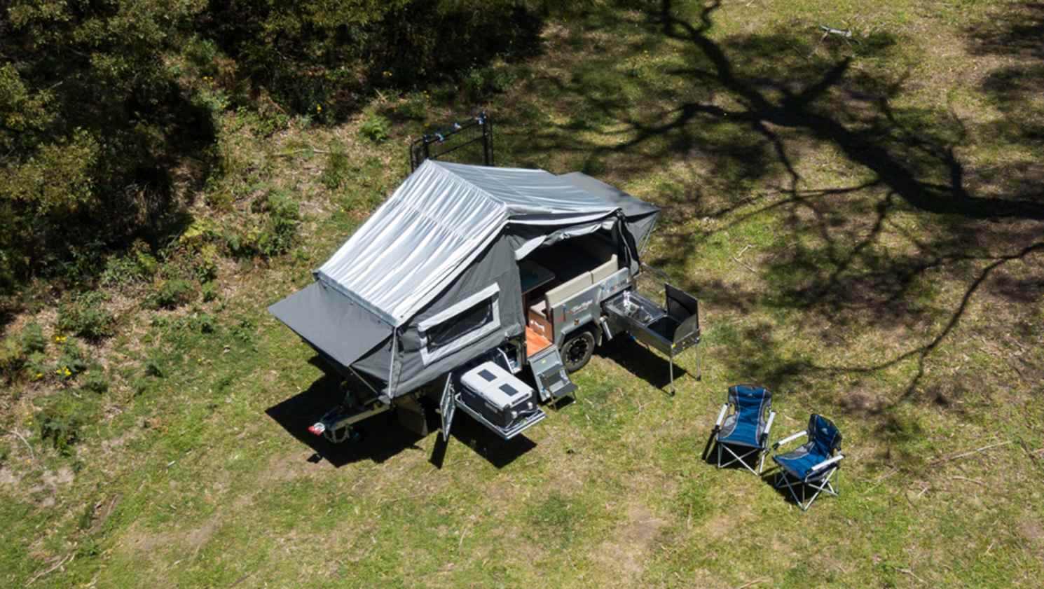 It only takes between five and 10 minutes to get the bulk of a camper-trailer set-up done, then probably another five to 10 minutes more to finalise the process, i.e. get awnings fully erect, all canvas sides pulled taut etc.