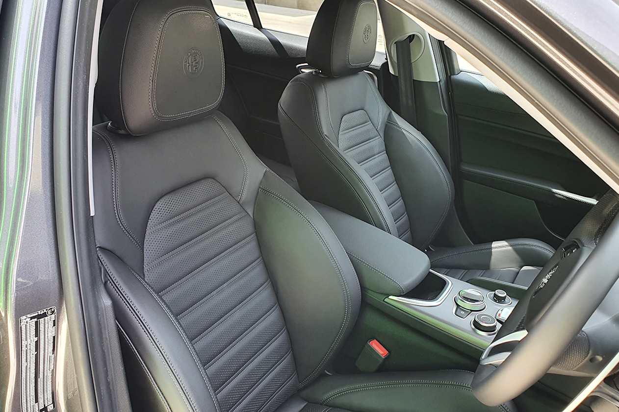 Sports seats are now standard for the front, while the base Sport and mid-tier Veloce grades feature split-folding rear seats. The top-spec Quadrifoglio's rear seats do not fold.