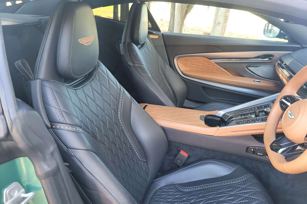 The Aston Martin DB12 is a 2+2 seater, but while the front seats are comfortable and supportive (and finished in high-quality leather) the rear seats are short on room and best used only in emergencies.