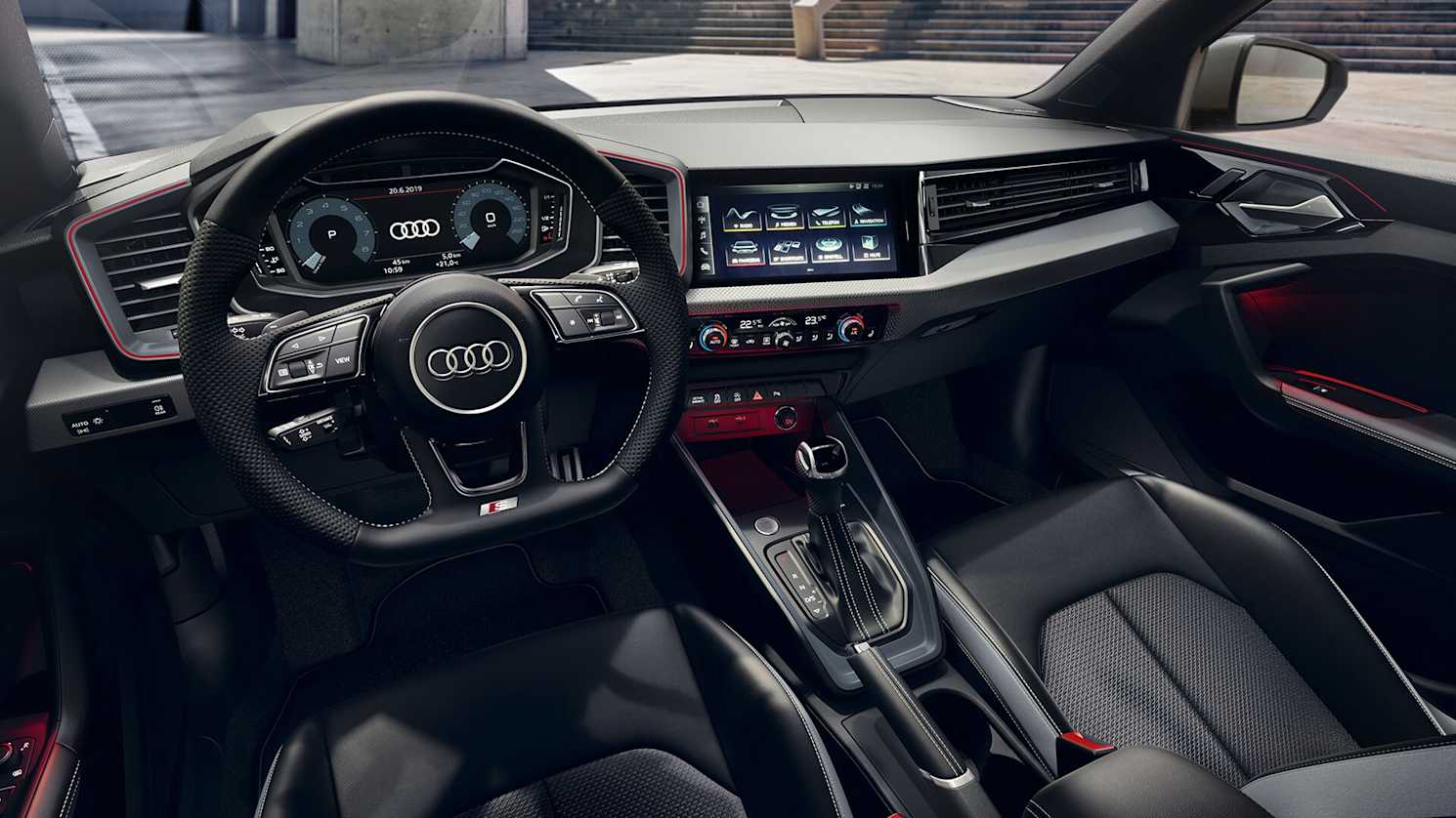 The following Audi A1 comes with five seats. The A1 30 TFSI is only available with Black Fabric seat upholstery, with the choice between ‘Delta’ or ‘Debut’ styles. The A1 35 TFSI is also available with Black Fabric seat upholstery, with the choice between ‘Debut’ and ‘Novum’ styles. As an optional extra, Sports front seats with Black Leather upholstery are available. The A1 40 TFSI is available only with Sports seats, with the choice of Black ‘Derby’ Fabric, Black leather or Black Alcantara and leatherette upholstery.