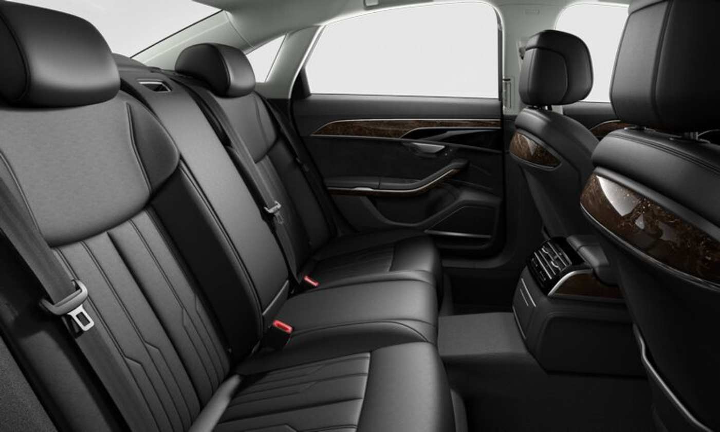 The following Audi A8 is available with five seats as standard, with a four seat configuration available as a part of the Executive Package which is exclusive to the long wheel base models. Both the A8 50 TDI and A8 55 TFSI quattro Tiptronic variants come with Valcona leather upholstery as standard. Valcona leather is available in the choice of Sard Brown, Black, Merlot Red, Nutmeg Brown, Pearl Beige or Saiga Beige.