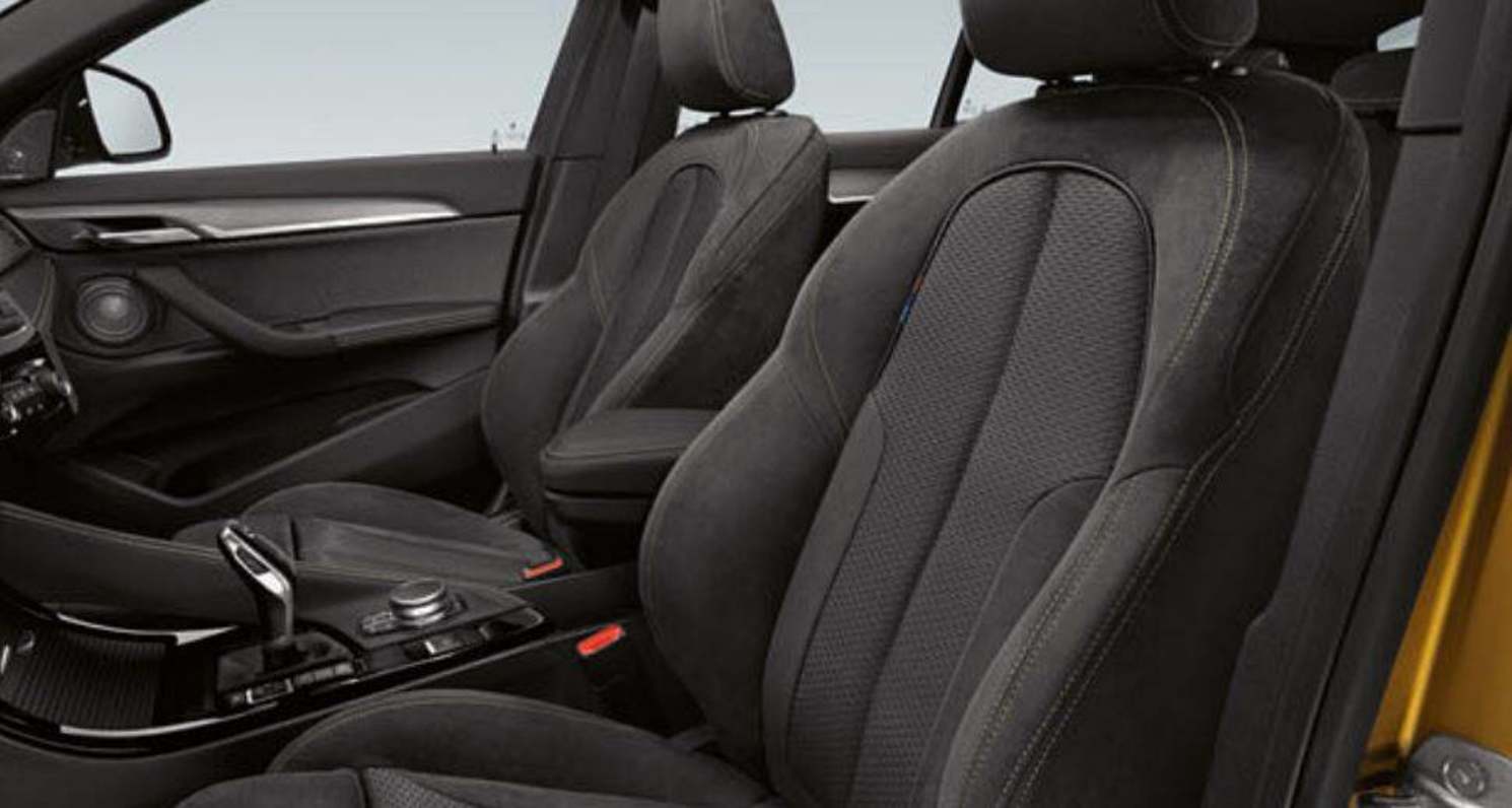The following BMW X2 is available with five seats. Anthracite Cloth upholstery is available as standard on the Base variant, with Anthracite with Grey accenting available as an optional extra on the Base variant only. Cloth and Alcantara combination upholstery is available as a part of the M Sport and M Sport X Packages. Sensatec upholstery is standard with the M Sport Packages, and available optionally on the Base variant. Dakota leather upholstery is available as an optional extra, with the choice between Black, Mocha, Oyster or Magma Red.