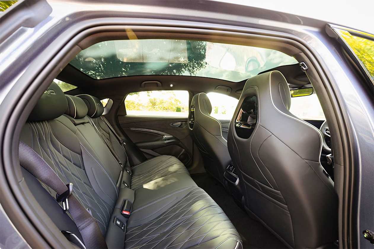 Thanks to the layout of the electric powertrain there is good space inside, with decent knee room in the rear for adults, although the glass roof and sloping roofline does compromise headroom for taller passengers.