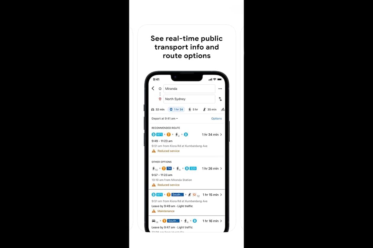 To get going, both apps require the user to enter a ‘starting point’ address and a ‘destination’ address, however if you don’t know the actual address, often a text prompt like ‘Westfield Sydney’ will find it for you. Both use your location as the automatic starting point but that can be changed manually, if need be.