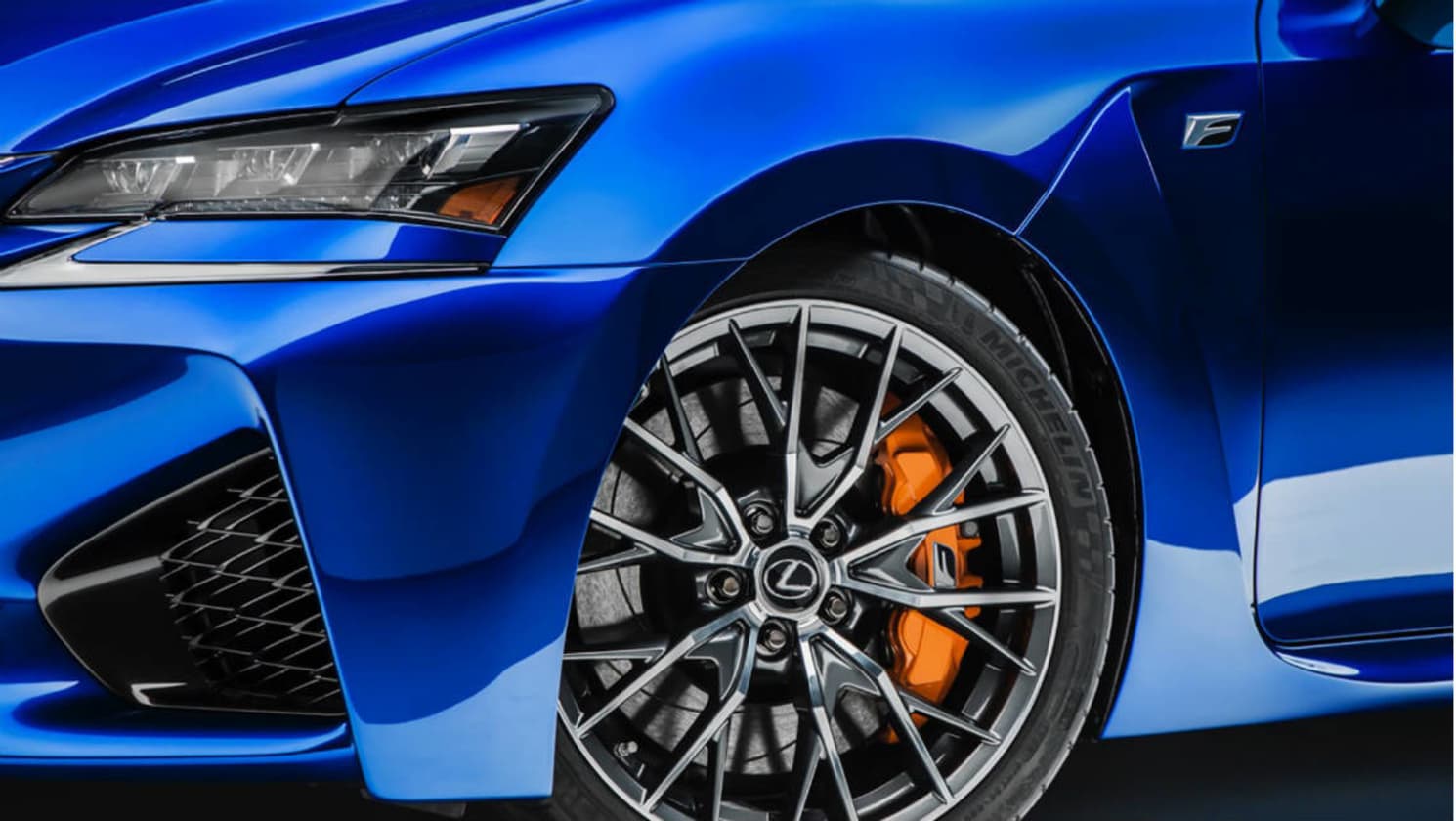 Compared to the standard GS sedan the F model features structural reinforcements, redesigned suspension and larger 19-inch wheels and tyres which cover bigger brakes with bright orange calipers.