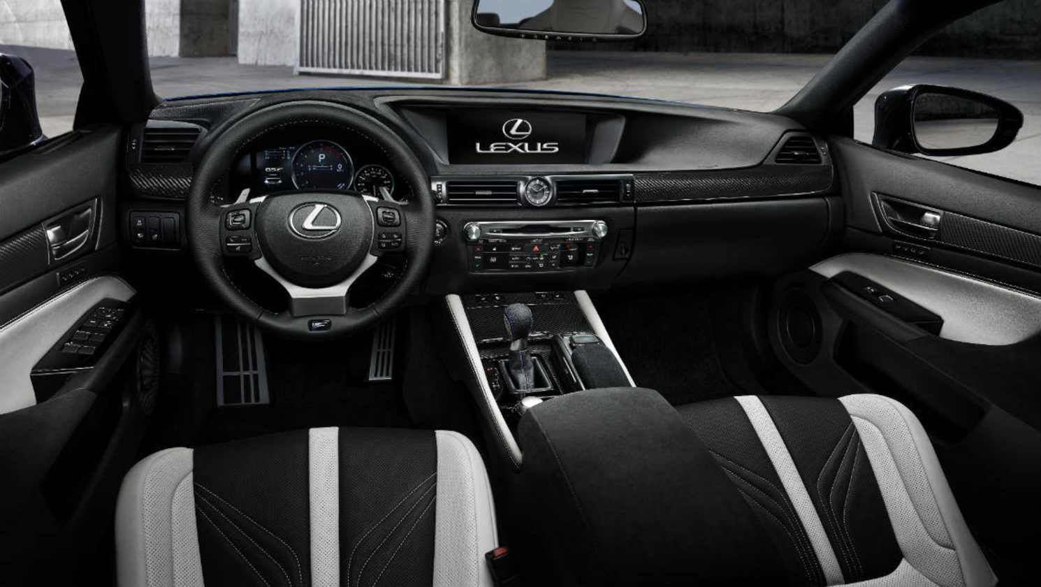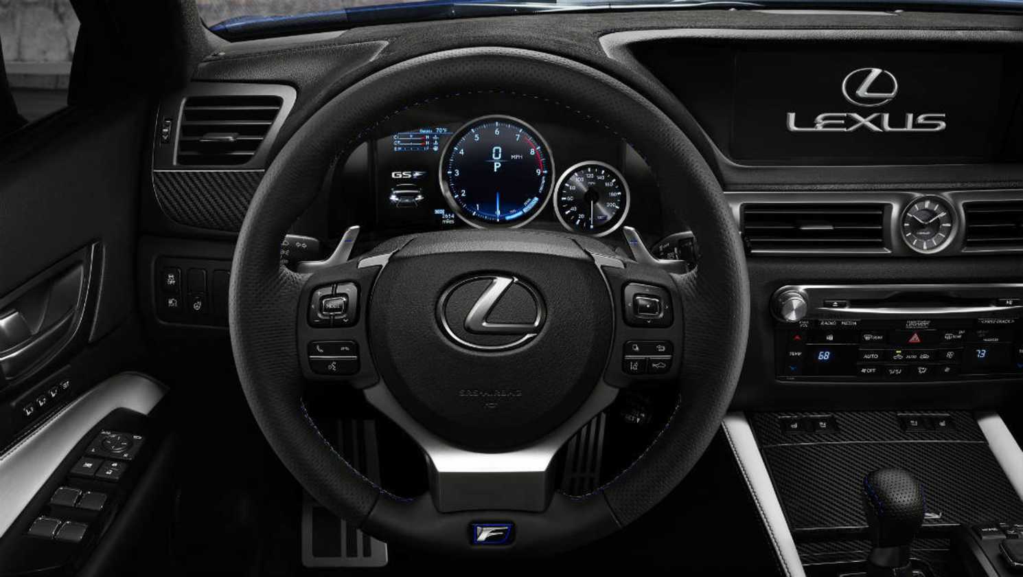 On the inside, the GS F gains a sports steering wheel, digital configurable instrument cluster, sports seats and carbon fibre and Alcantara trimmings.