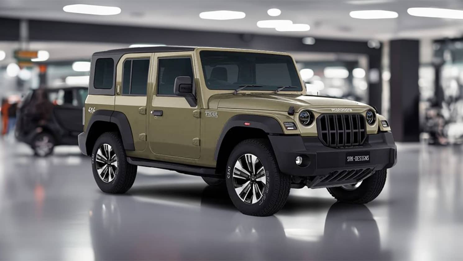 Digital artist SRK Designs has created a render of the Thar five-door, which features a slightly redesigned front end that differs from the face of the current three-door Thar that looks quite similar to the Jeep Wrangler.