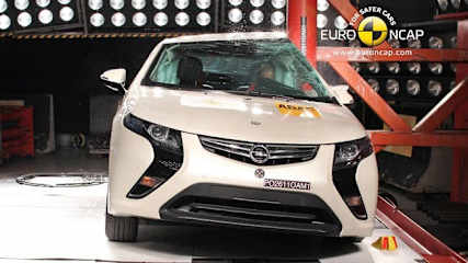 "The new range-extending EV reaches the maximum points in the side pole test as a result of a well-optimised balance of structure, interior and restraint system," says the head of Euro NCAP, Michiel van Ratingen. He also praises the work at GM following the scores for the Aveo and Orlando people mover.