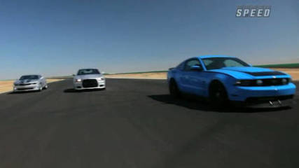 Host Adam Carolla, Matt Farah and Dan Neil drive the 2010 Camaro SS, 2011 Mustang RTR and 2012 Charger SRT8 at Willow Springs Raceway.Which of the Big Three’s biggest three comes out ahead?