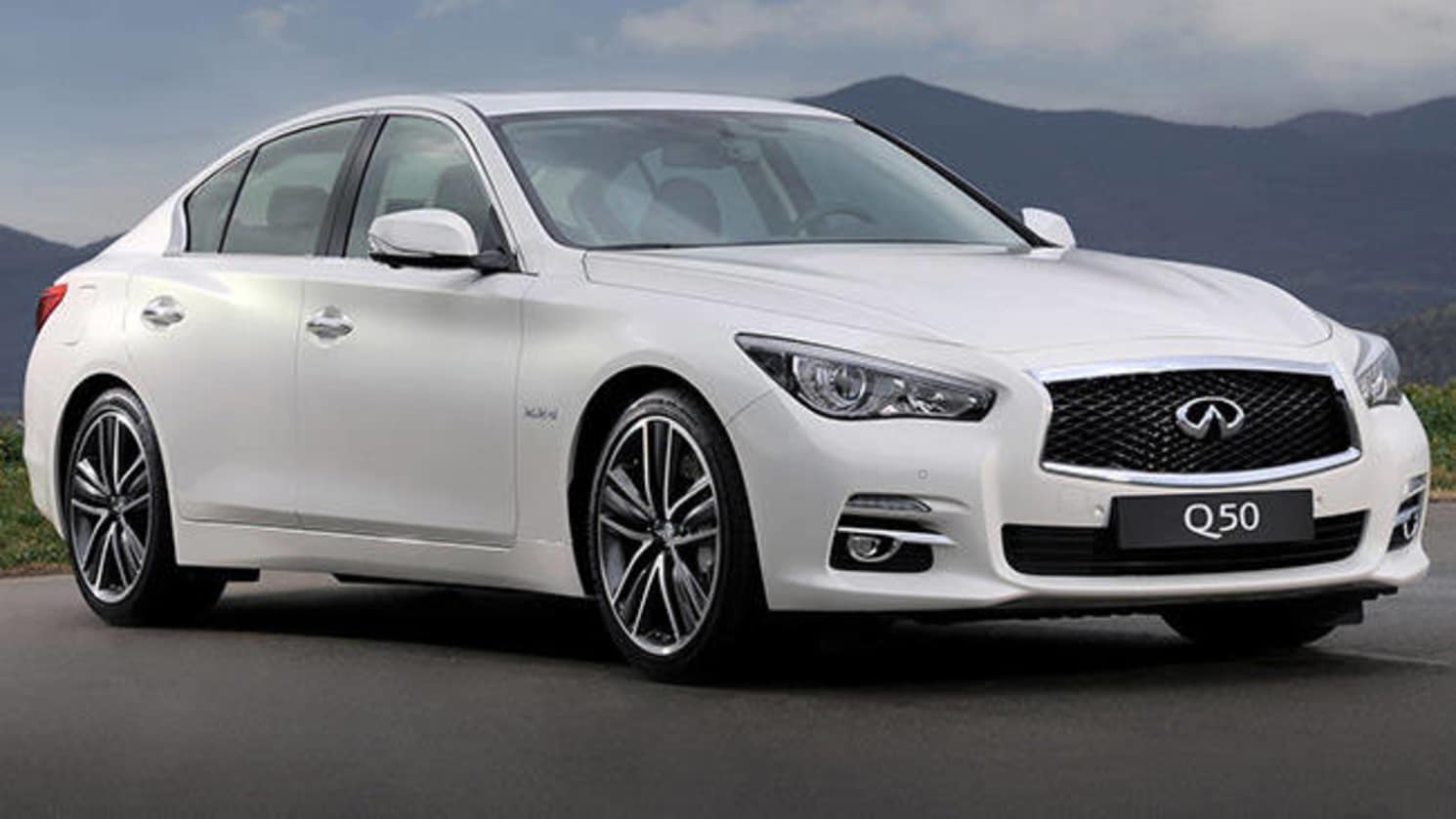 The Q50 has a five star ANCAP safety rating under the new 2014 guidelines, which mandate higher pedestrian safety. Standard across the range are six airbags, brake assist, brake force distribution, active cruise control, front and rear sensors with rear-facing camera. S Premium adds a suite of safety features including predictive collision forward warning, active lane control, blind spot intervention, forward emergency braking and moving object detection. Pre-collision forward warning monitors two cars ahead and hits the brakes to help prevent an accident. Back-up Collision Intervention avoid large objects and adults walking into your parth.
