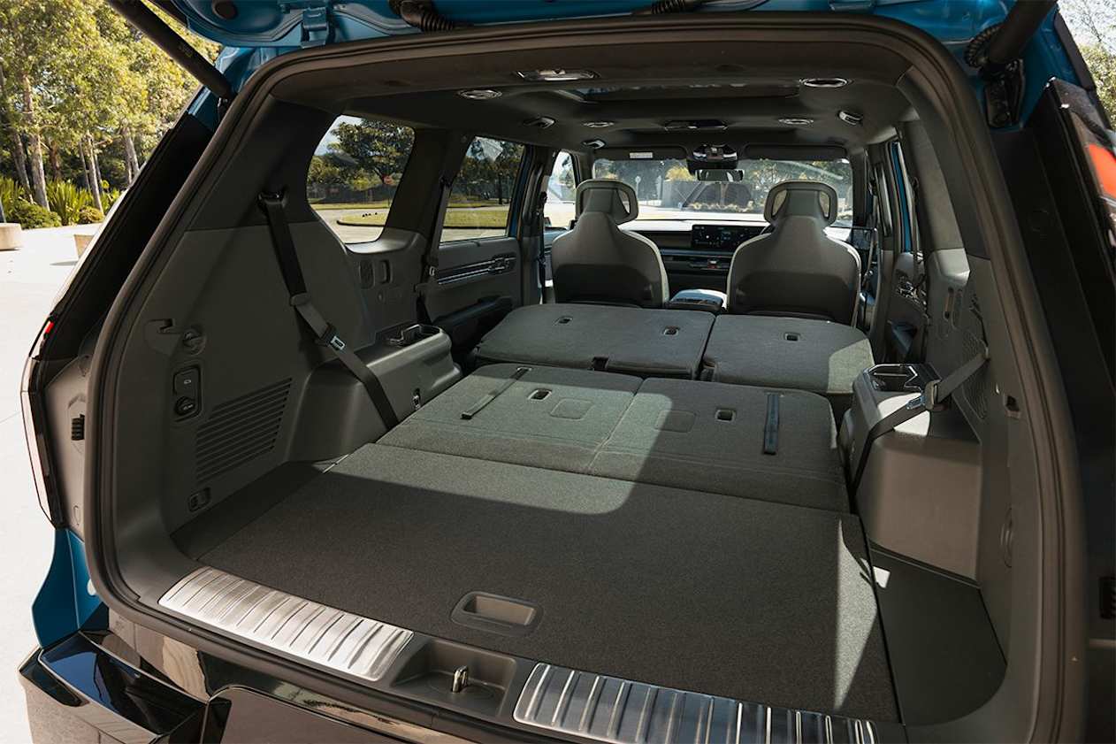 All EV9s get a heap of boot space, growing from 573L to 1233L and 2314L, depending on whether you have seven, five or two seats in place.