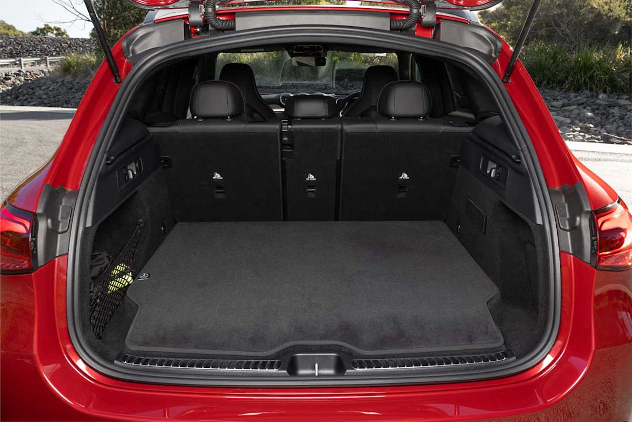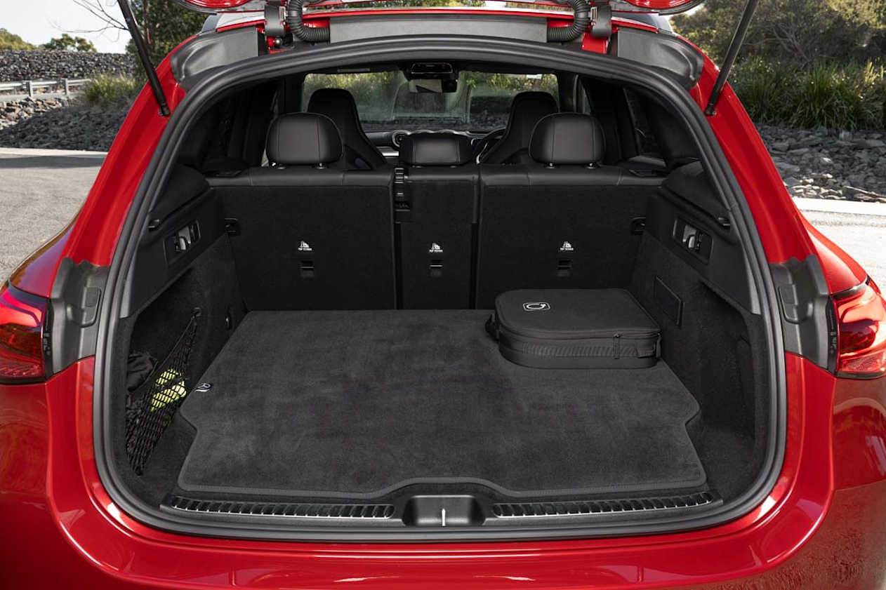 The boot is 590 litres, down from 620L in the rest of the range, thanks to the addition of the rear-mounted electric motor. Thereās also no room for the temporary spare the rest of the GLC range gets and instead you have to make do with a puncture repair kit.