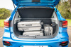 There’s no spare wheel, so you will have to make do with an inflator kit, but there is two cutaways in the underfloor styrofoam liner for the storage of your charging cables.
