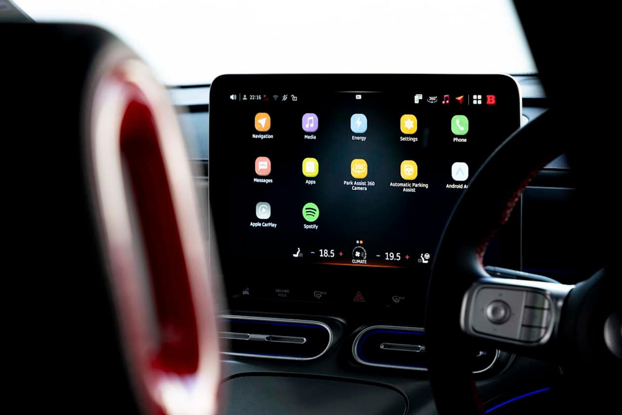 There’s also 22kW AC charging on board in the Premium and Brabus models, which means you can use three-phase power, but plugged into a regular 7.4kWh home wallbox should see you go from zero to 80 per cent charged in 7.5 hours, which means overnight charging should work a treat.