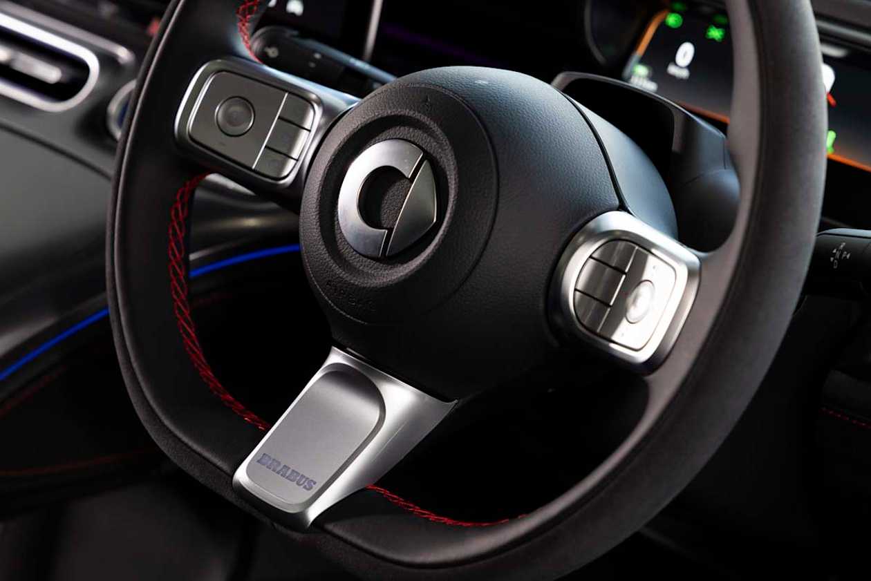 The Brabus, though, adds a motor at the front axle, giving it AWD, which ups the outputs to a punchy 315kW and 543Nm, dropping the sprint to 100km/h to a very fast-feeling 3.9 seconds.
