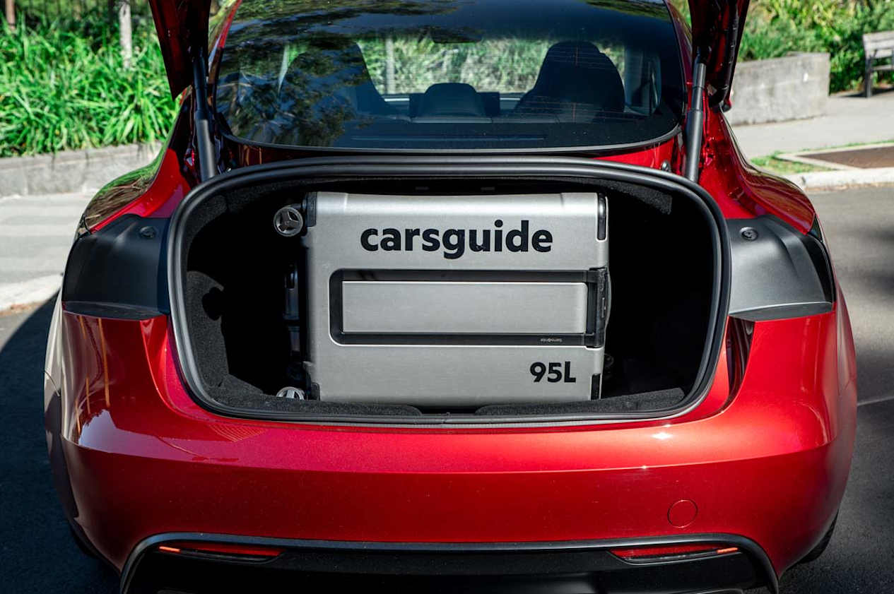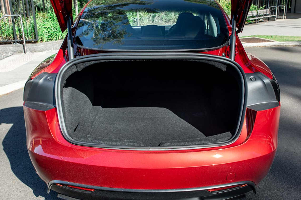 Boot space is 594 litres which sounds massive, but because the Model 3 is a sedan, it’s hard to load things into (especially compared to a car with a rear hatch opening like the Polestar 2) and much of the usable volume is in a compartment under the floor.