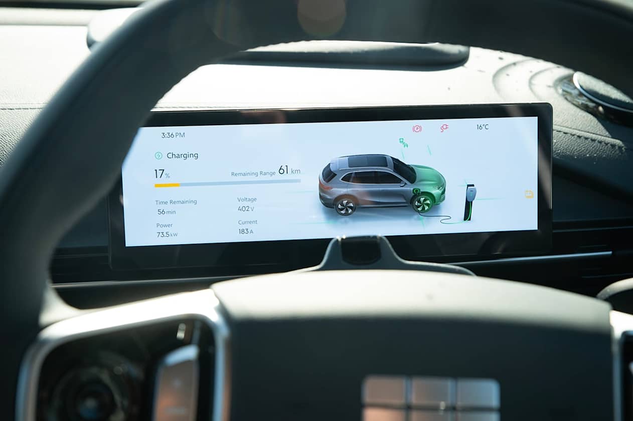 The EX5 launch variants only have one battery, a 60.22 lithium-iron phosphate (LFP) unit delivering a range of 430km for the base Complete or 410km for the top-spec Inspire.