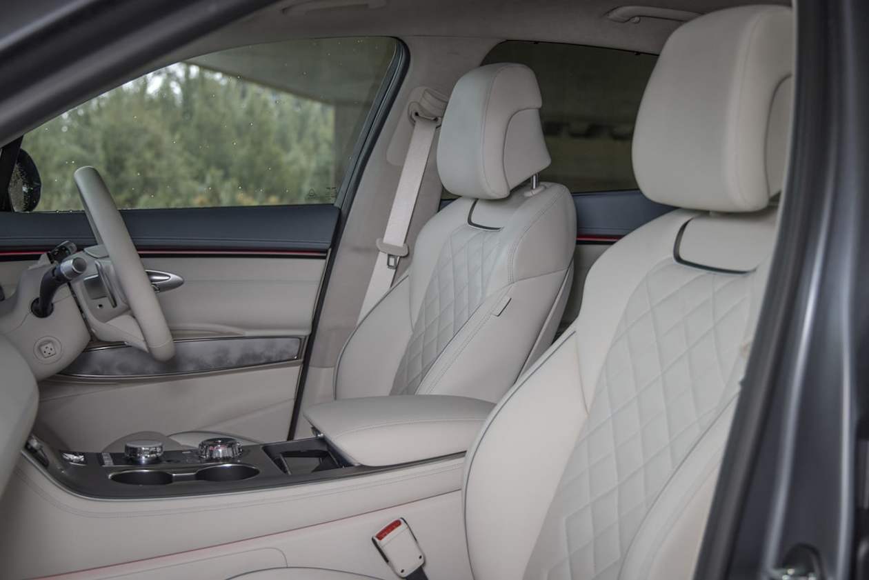 The GV70 Electrified runs on a new 84kWh lithium-ion battery, giving a WLTP driving range of up to 462km. The claimed energy consumption figure is 20.0kWh/100km.
