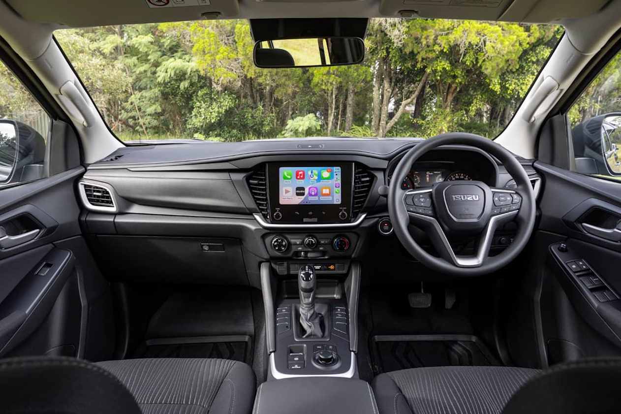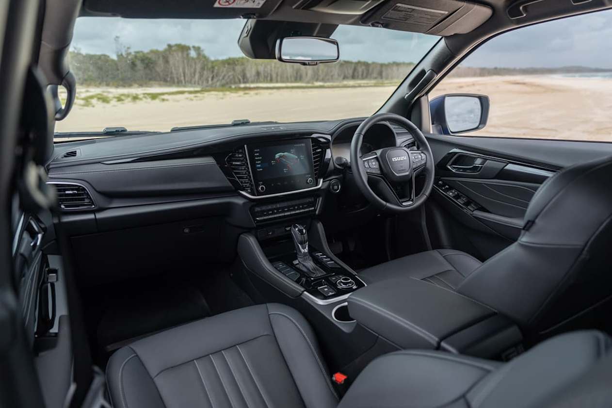 Isuzu has redesigned the interior for 2025. There’s a redesigned steering wheel, taking inspiration from the Hexa Pod theme of the exterior, while the dashboard itself has been reprofiled after the shape of the F-35 fighter jet. The LS-M and LS-U get new cloth trim and there’s fresh leather-accented seats in the LS-T and X-Terrain.