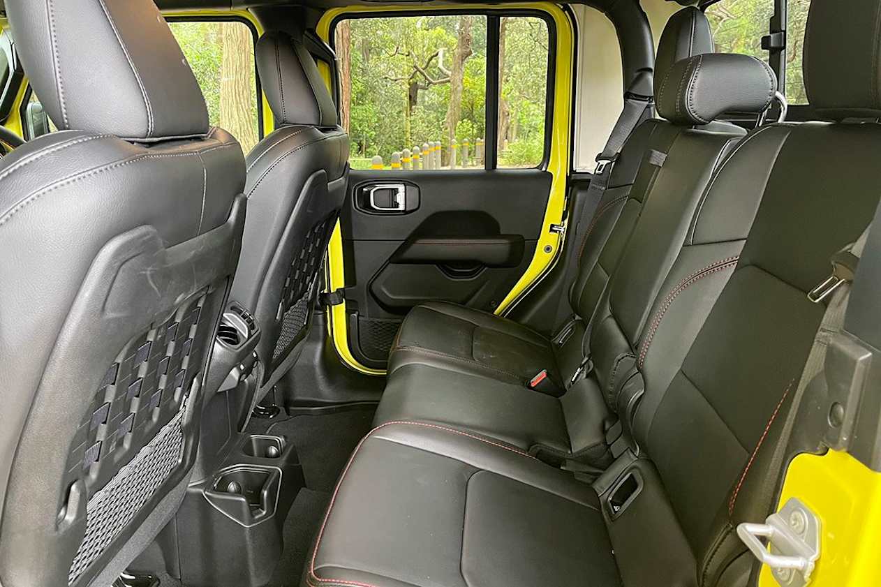 The Jeep Gladiator has five seats. Seating is okay but anyone taller than Tom Cruise’s stunt double has to mind their head so they don’t thump it on the unforgivingly hard ceiling of the detachable top.