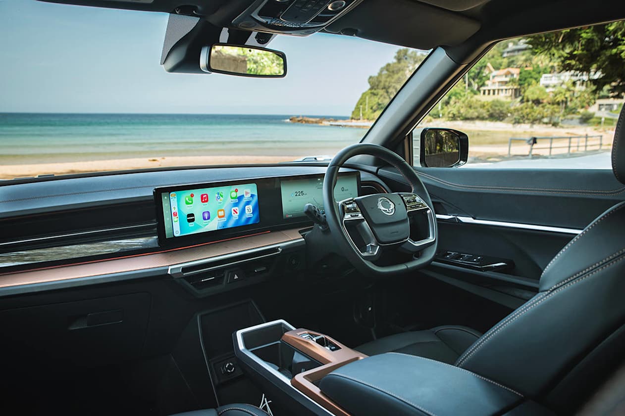 The KGM Torres Hybrid has a claimed fuel use figure of 5.6L/100km and with the 50-litre fuel tank, you could theoretically get a total driving range of about 890km.