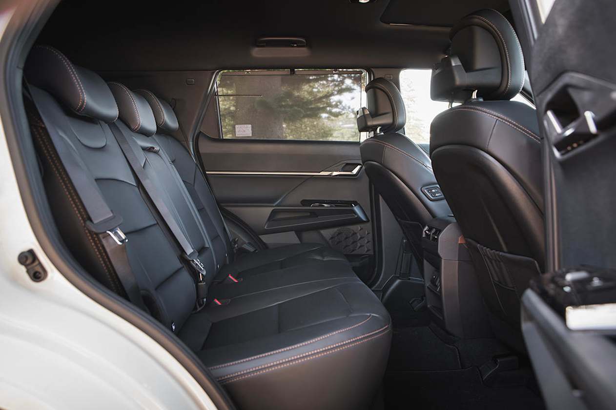 The KGM Torres is a five-seat mid-sized family SUV. It has a 60/40 split-fold rear seat with ISOFIX anchors on the two rear outboard seats and three top tether points. The front seats are well bolstered but manual adjust. Some are heated depending on the grade and there's a mix of fabric and synthetic leather material.