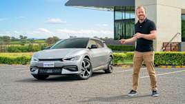 The base $67,990 EV6 Air’s specification list includes vegan artificial leather upholstery, powered lumbar support for the driver’s seat, dual-zone climate control, LED lighting, two integrated 12.3-inch displays, satellite navigation, digital radio, Apple CarPlay/Android Auto, Bluetooth connectivity, USBs galore, wireless phone charging, powered folding mirrors, regenerative braking paddles that promote one-pedal driving, a powered charging flap (housing Type 2 and CCS charging ports), 19-inch alloys and a tyre mobility kit.