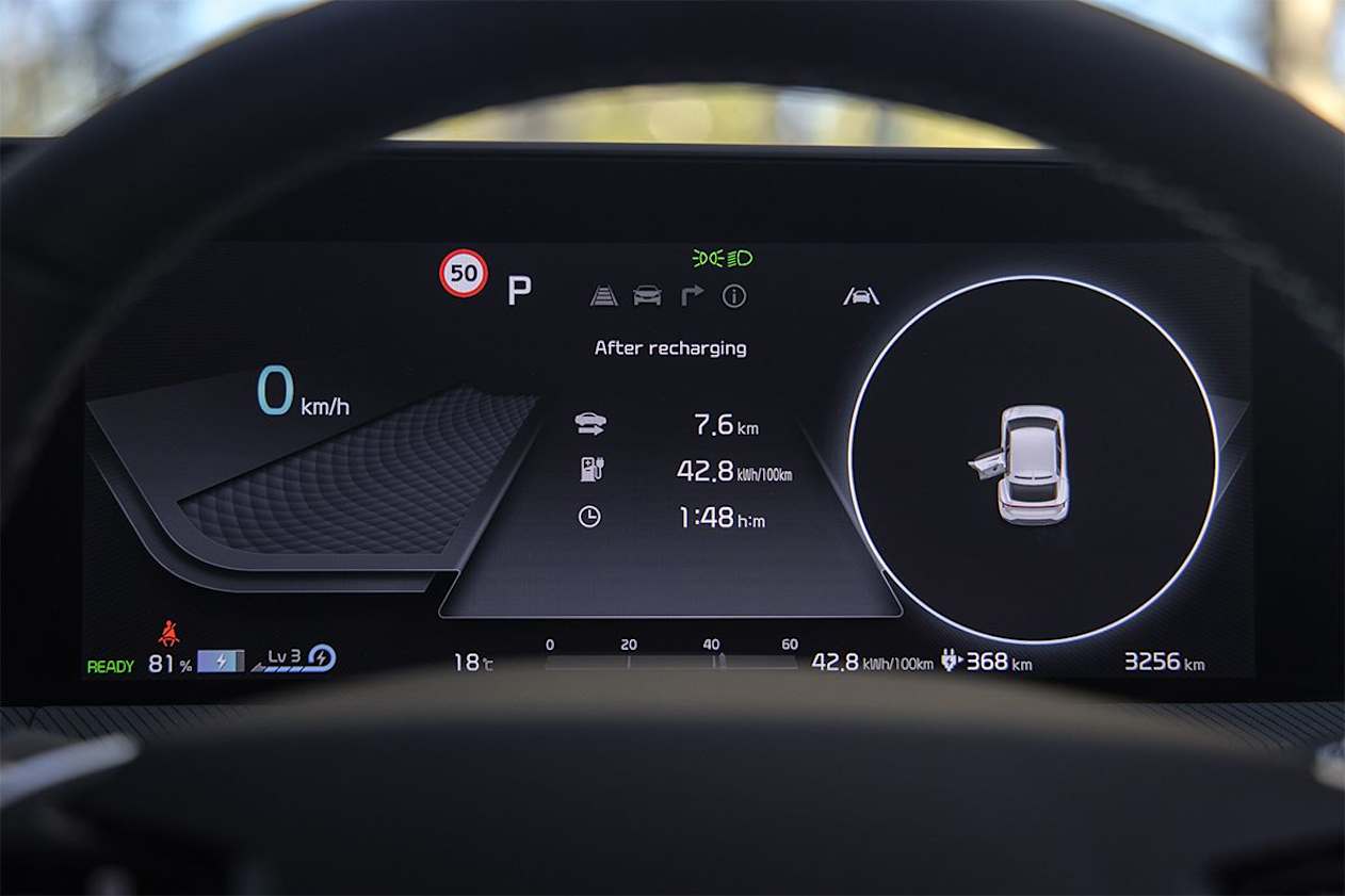 Going the GT-Line AWD as tested from $82,990 adds a front-mounted electric motor, boosting total power and torque outputs to 239kW and 605Nm respectively, as well as a large sunroof.