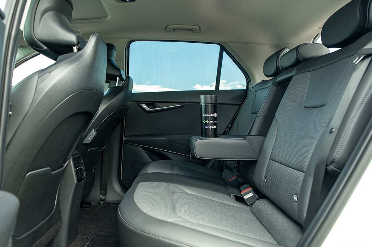 You'll find cupholders up front and for backseat riders, as well as bottle-holder storage in each of the doors. Also very cool is, in the All Electric model, a V2L plug (which is a traditional Australian plug socket) meaning you can charge bigger devices on the fly by simply plugging in.