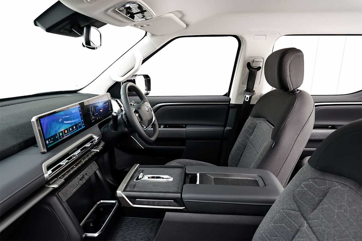 The cabin is wide enough that LDV has been able to add what amounts to a small desk between the front seats. There are cup-holders in the lower centre console as well as USB and charge ports in the rear of the centre console. Each rear door card has three layers of storage. Information is displayed on a pair of 12.3-inch screens (joined to appear as one) and the LDV has one-touch, electronic interior door handles.