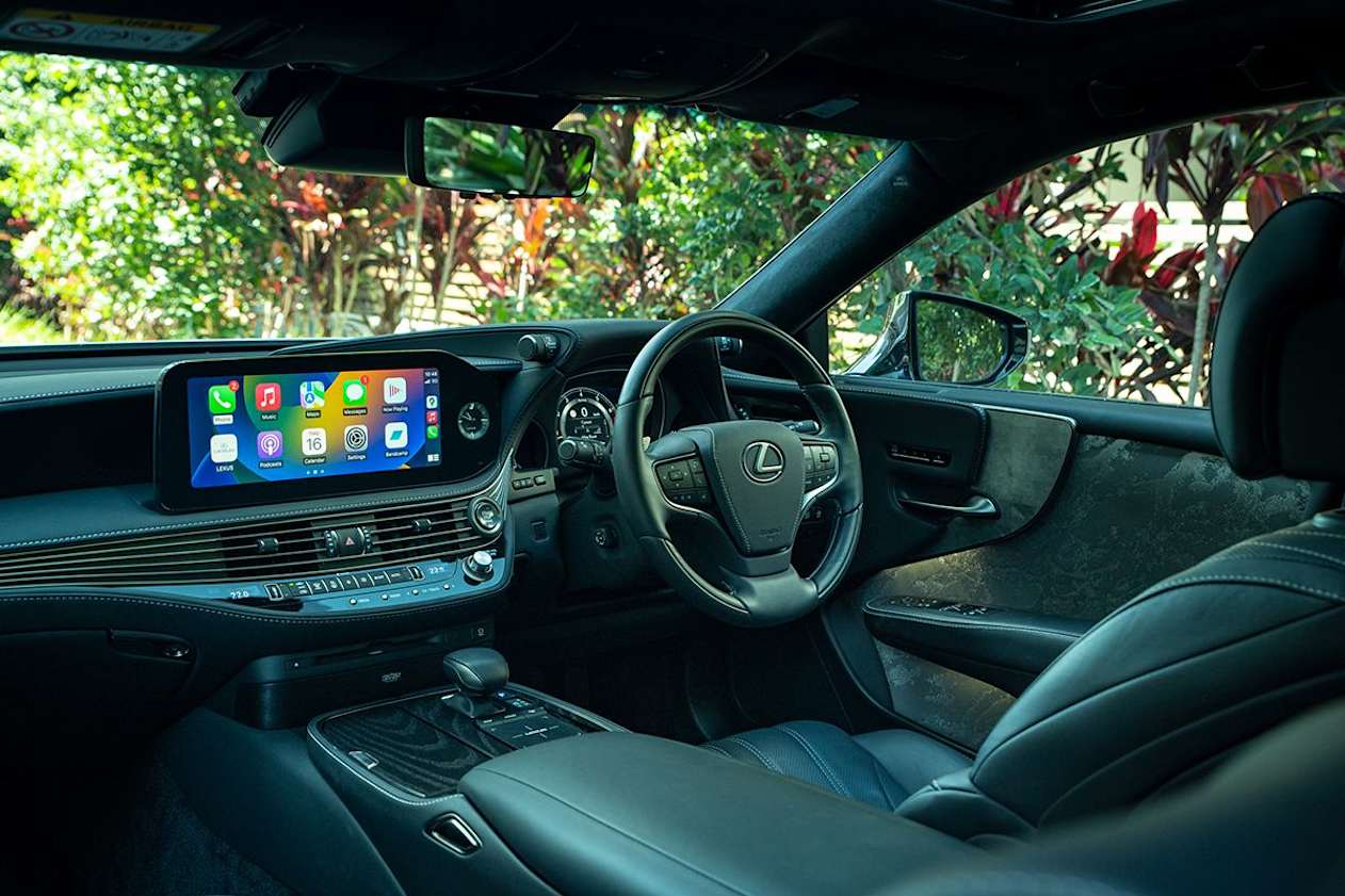 The Lexus LS can sprint from 0-100km/h in 5.4 seconds when chosen as a V6 hybrid, or 5.0 seconds as a turbocharged V6. Top speed is 250km/h.