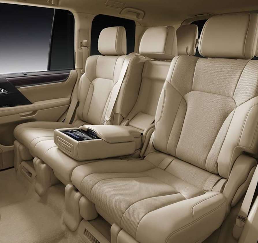 The following Lexus LX is available with eight seats. In the LX570 variant, the second row comes in a 40:20:40 split folding configuration, while third row seats include a 50:50 split fold configuration and the ability to be stowed with the touch of a button. The choice of Ivory or Black Leather accented seat trim is available on the LX 570 and 570S variants. Semi-Aniline Leather accented upholstery is available as a part of the optional Enhancement Pack, with the choice of Mellow White, Black, Chestnut or Garnet.