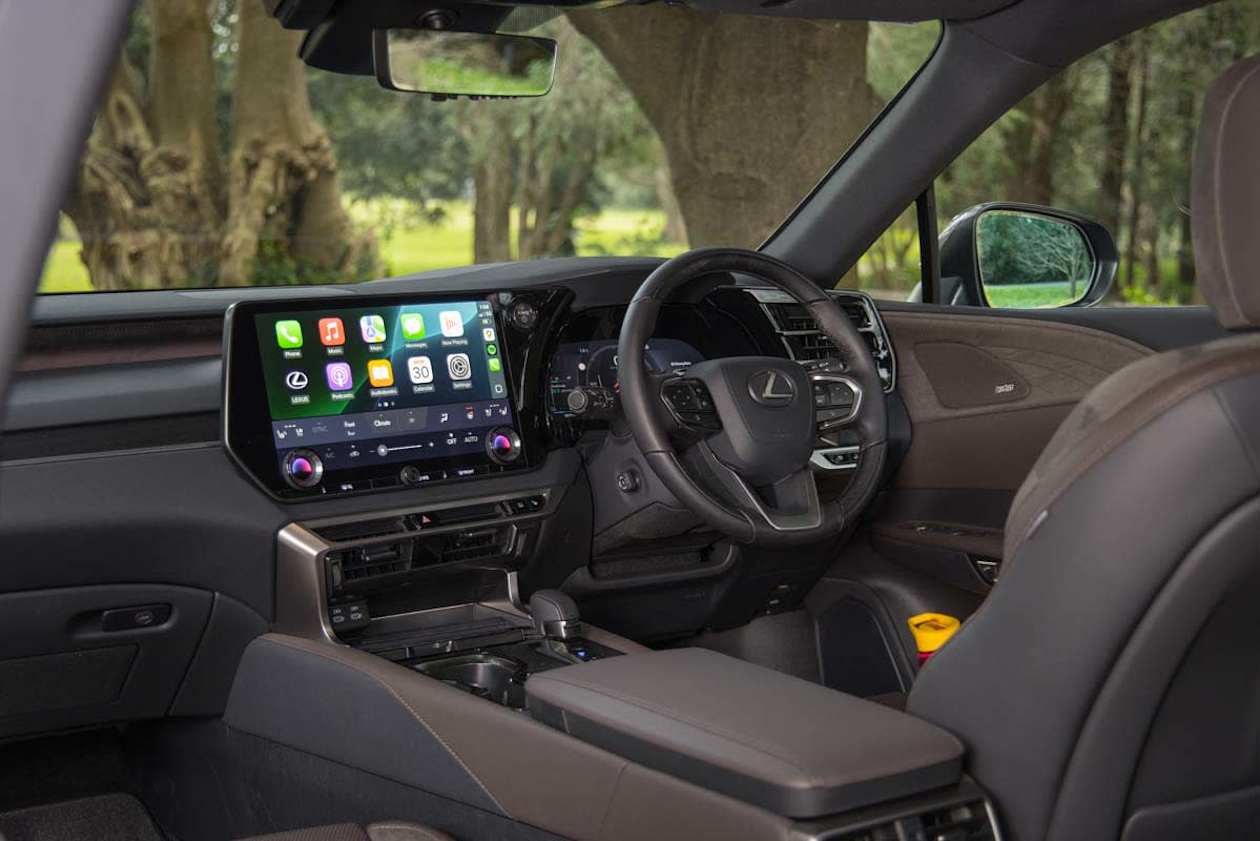 The Lexus RX450h+ has a 55L fuel tank and a claimed combined fuel cycle of 1.3L/100km. It has a NEDC 65km electric-only driving range.