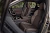 The rear seats are set in a stadium-style layout with a 40/20/40 split and offer long seat bases, thick padding, and a fold-down armrest with two cupholders. Leather-accented upholstery is standard across the range, while higher grades upgrade to a premium leather and suede finish.