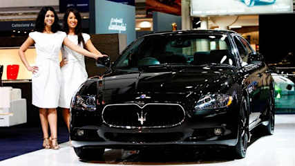 The trident marque has sold 110 of its ultra luxury grand tourers in Australia this year and used AIMS to emphasise it recent feats on European tracks.While the name wants for something of the car's streamlined elegance, the Quattroporte Sport GT S MC Sportline recognises the 40 race victories of the MC12. Sinisterly turnedout with the same t in gleaming black metallic paint and black 20-inch alloys, and caron fibre trim within, the limited edition of 30 costs "only" $298,800 - that's $30K under the standard GTS with the same tuneful 4.7-litre 323kW V8.Making an altogether different, and literally more open statement, is the GranCabrio, which has it first showing to the local general public. Arguably the beauty queen of AIMS 2010, Maserati's first fully four seat convertible is current range topper at $338,000.Maserati Australia boss Glen Sealey affirmed that an entirely new model is being developed.