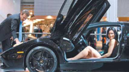 The star of Lamborghini's stand; one of the most expensive cars on display at the Australian International Motor Show which opened yesterday, a Murcielago LP640 Versace and is the only one left.