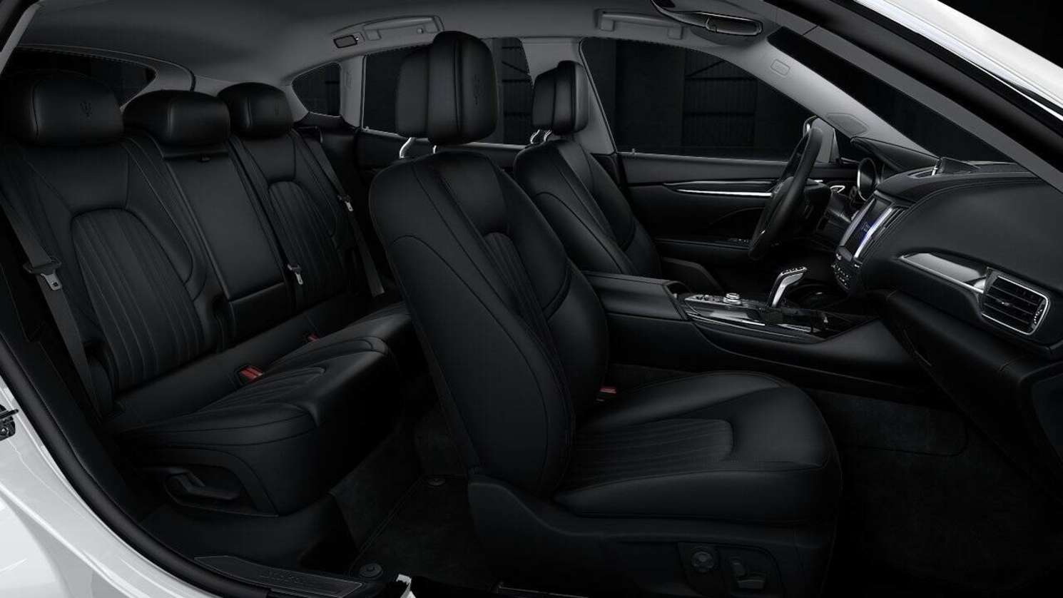 The following Maserati Levante is available with five seats. The Levante, Levante S and Levante Diesel variants come in one of three grades, being Levante, Levante GranLusso or Levante GranSport. The Levante grade comes with the choice between Premium fine grain leather, Premium fine grain perforated leather or Pieno Fiore Natural Leather. All these leathers are available in Nero, Cuoio, Sabbia, Nero with contrast stitching, Marrone with contrast stitching or Rosso with contrast stitching. The GranLusso grade comes with Ermenegildo Zega silk and Premium leather combination upholstery, with the choice between Nero, Cuoio or Rosso. It is also available with Leather upholstery in Cuoio/Nero two tone, Nero, Cuoio, Sabbia, Marrone, Nero with contrast stitching, Marrone with contrast stitching or Rosso with contrast stitching. The GranSport grade comes with the choice between Premium fine grain leather, Premium fine grain perforated leather, Pieno Fiore Natural Leather or Pelletessuta leather. These leather upholsteries are available in the choice of Cuoio/Nero two tone, Nero, Cuoio, Sabbia, Marrone, Nero with contrast stitching or Rosso with contrast stitching. The Levante GTS comes with the choice of Premium fine grain leather, Premium fine grain perforated leather or Pieno Fiore Natural Leather. These leather upholsteries are available in Cuoio/Nero two tone, Nero, Cuoio, Sabbia, Marrone, Nero with contrast stitching, Cuoio with contrast stitching or Rosso with contrast stitching. The Levante Trofeo variant is only available with Pieno Fiore Natural Leather, with the choice of Cuoio/Nero, Marrone, Nero with contrast stitching, Rosso with contrast stitching or Cuoio with contrast stitching.