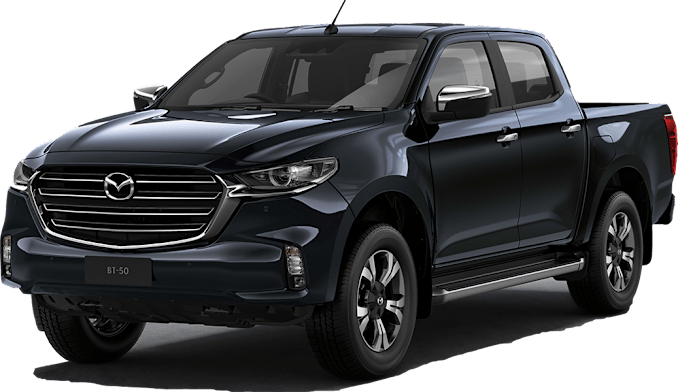 The Mazda BT-50 is available in a range of exterior colours including 'Red Volcano Mica', 'Rocky Grey Mica', 'Gun Blue Mica', 'Concrete Grey Mica', 'Ingot Silver Metallic', 'True Black Mica' and 'Ice White'.