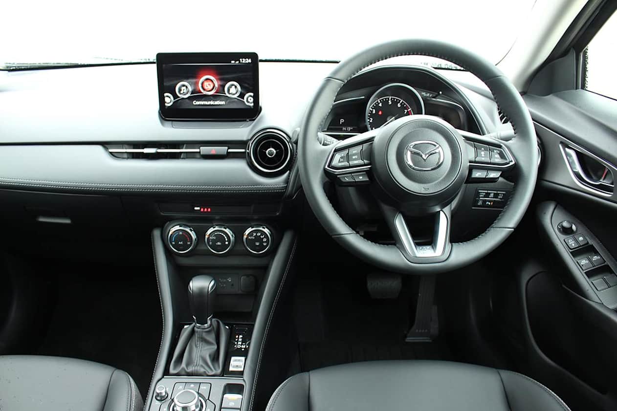 The CX-3 has a decent list of standard features, like an 8.0-inch multimedia touchscreen, leather-wrapped gear shift knob, handbrake handle and steering wheel, keyless start, wireless Apple CarPlay and wired Android Auto and LED headlights, daytime running lights and tail-lights.