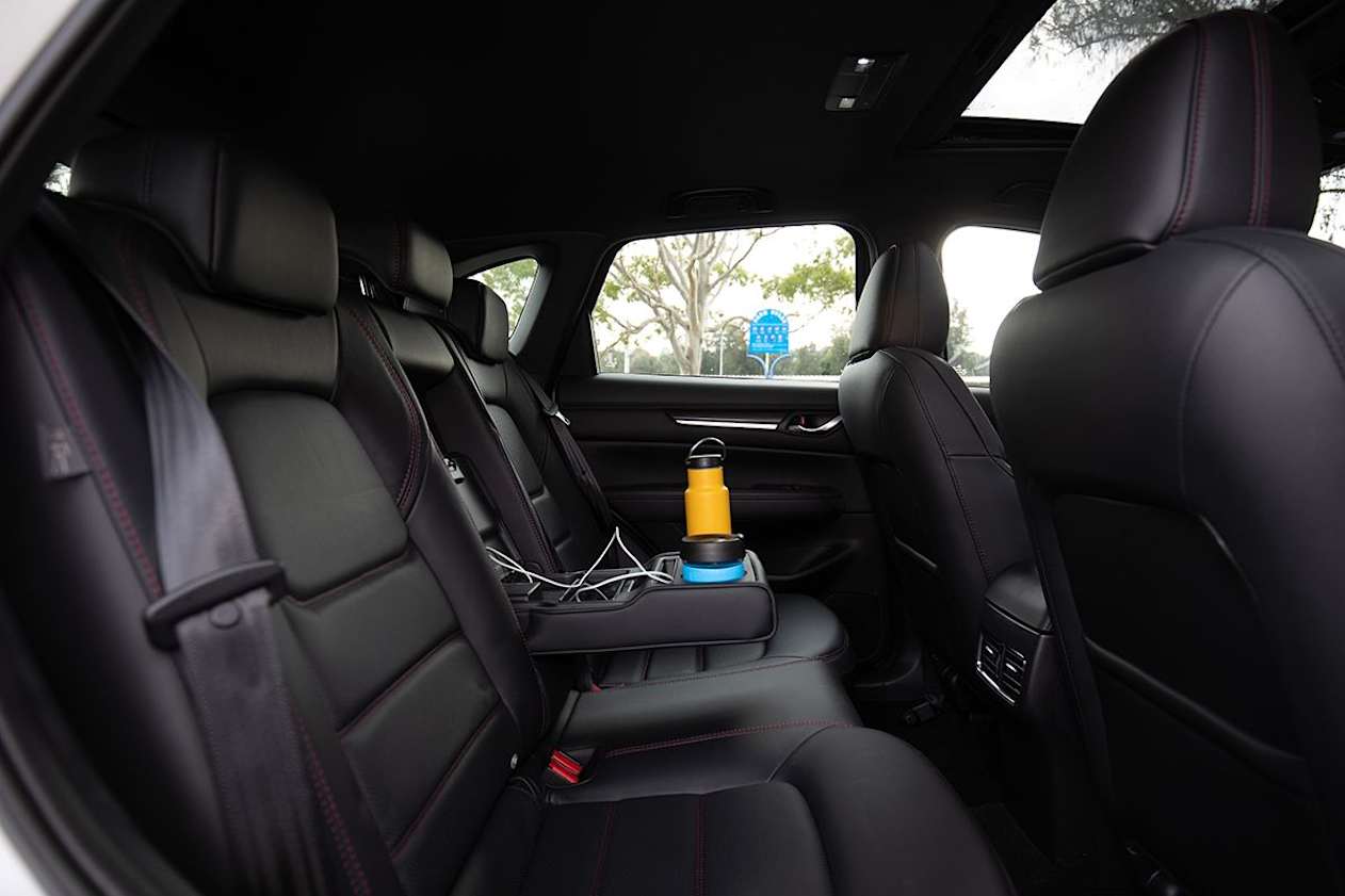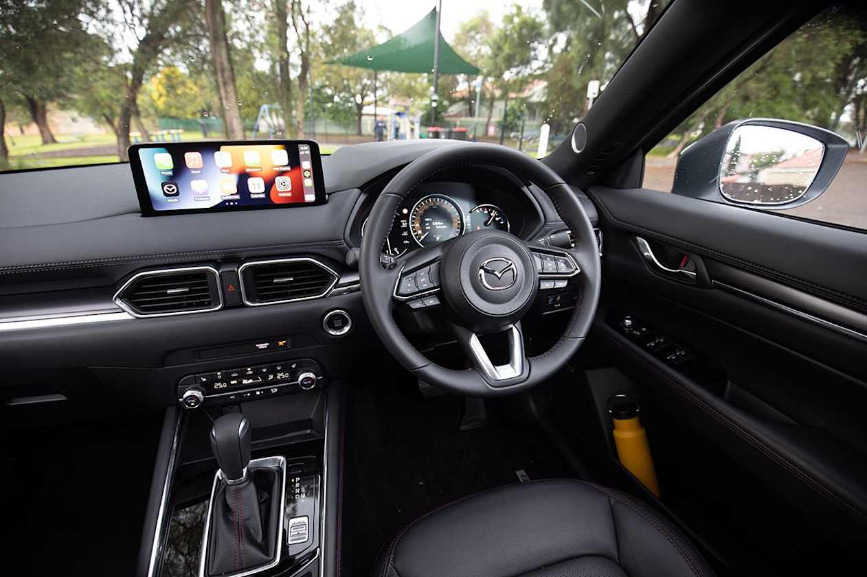 Standard equipment in the Mazda CX-5 includes auto LED headlights, rain-sensing wipers, push-button start, satellite navigation, Apple CarPlay and Android Auto and a head-up display. There are a few standard safety features, too, like: rear-cross traffic alert, blind spot monitoring, auto emergency braking with pedestrian detection and lane keeping aids.