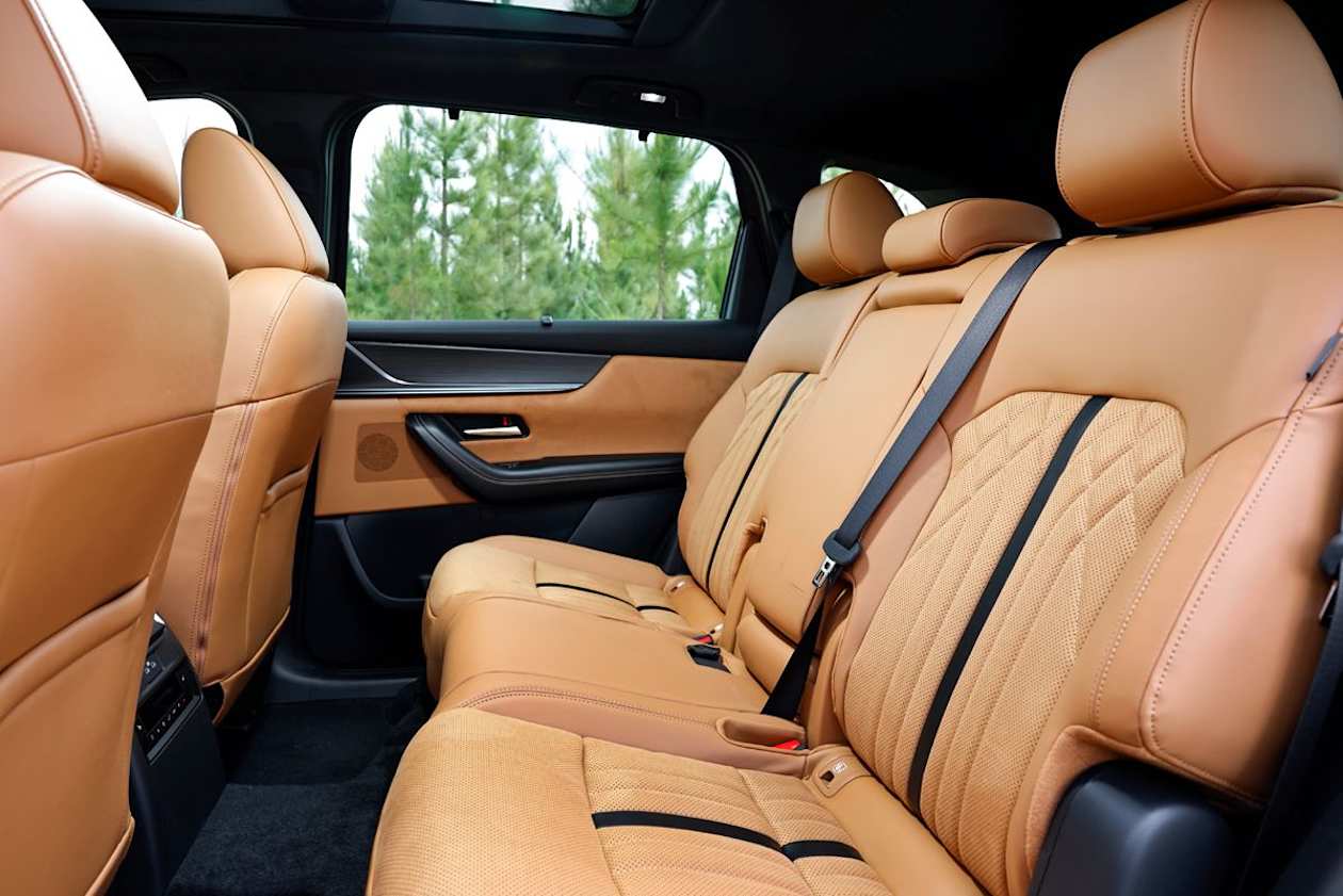 The cabin of Mazda's CX-70 is a plush and premium feeling space, awash with lovely materials and plenty of tech - and plenty of space, especially for backseat riders.