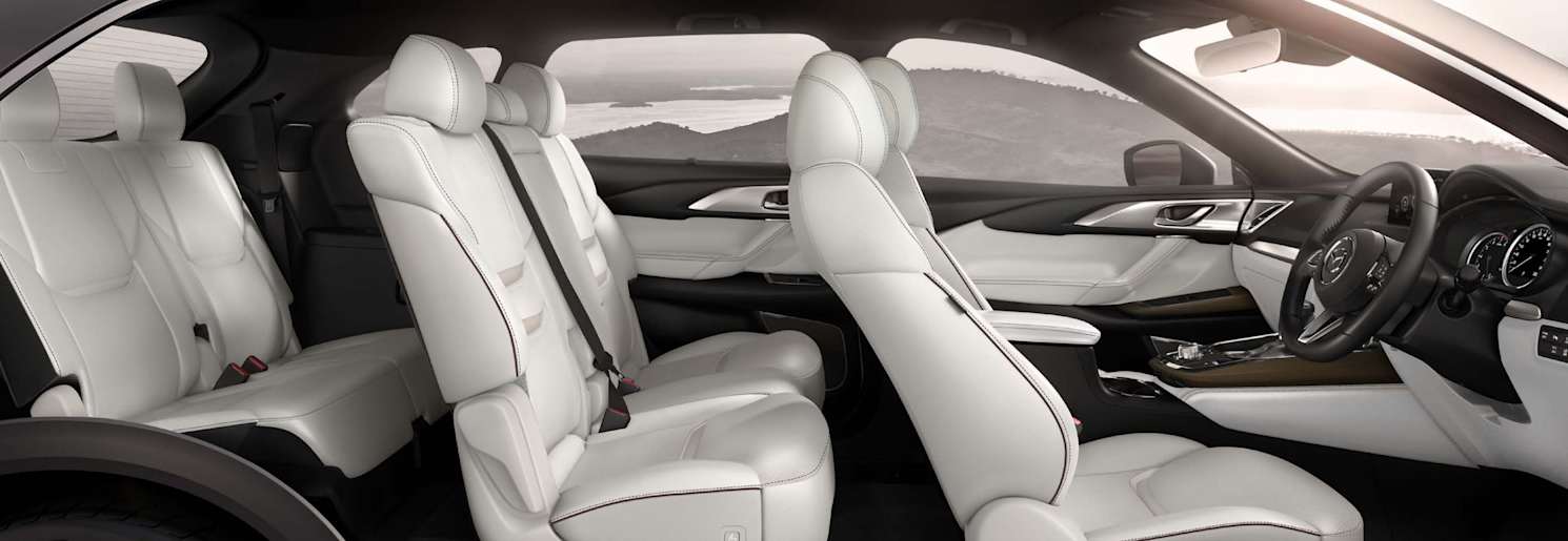 The following Mazda CX-9 is only available with a seven seat configuration. Black cloth seats are available on the Sport variant only, with Black leather available in the Touring variant. Both Black and Natural Stone leather are available in the GT variant. The Azami variant has the option of either Pure White Nappa Leather or Walnut Brown Nappa Leather.