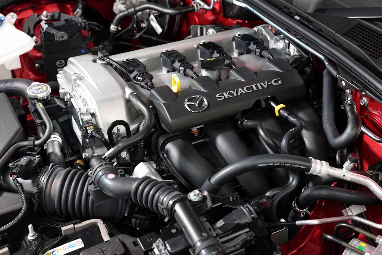 A 2.0-litre naturally aspirated four-cylinder engine is the only one available in the MX-5 range. It makes 135kW and 205Nm, and can be paried with a six-speed manual in any variant, or a six-speed automatic in GT variants.