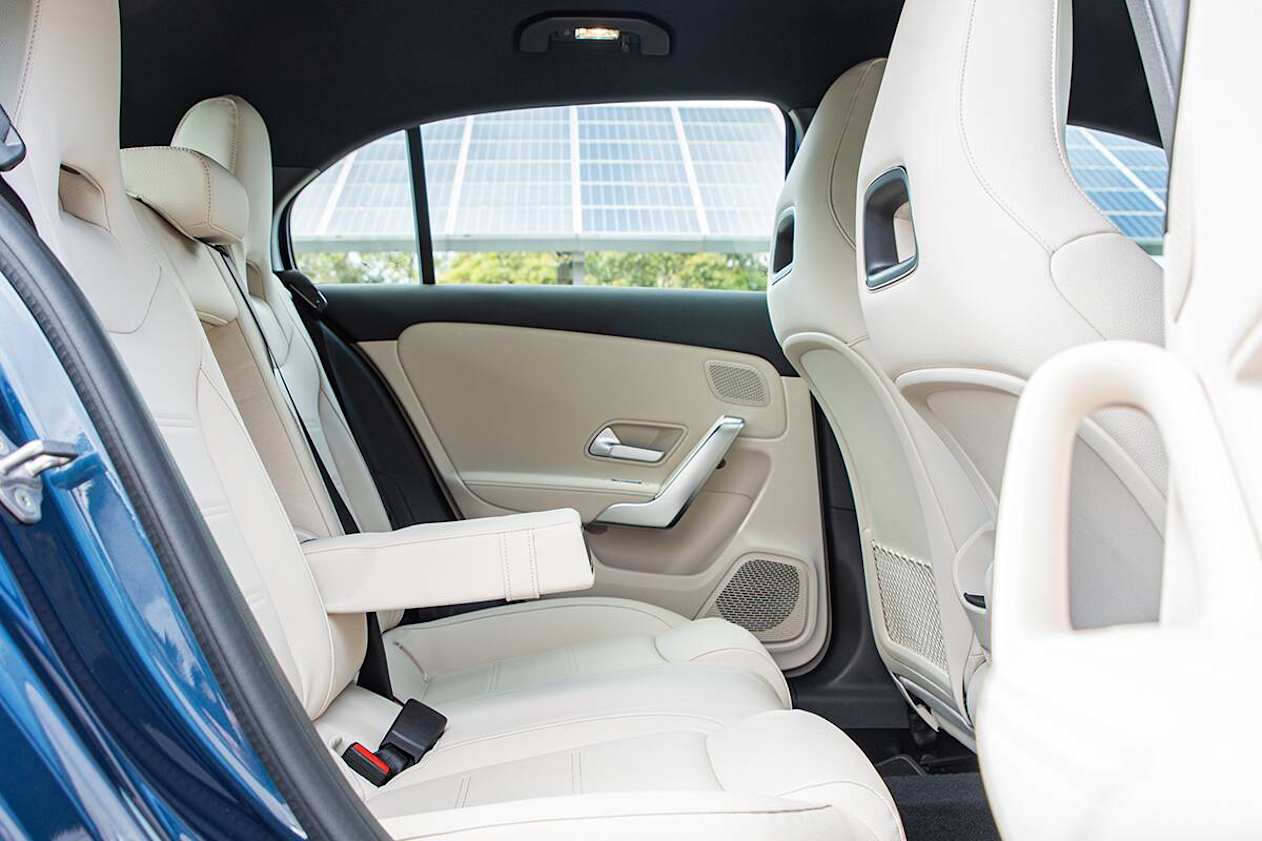 The A 250 e has the same five seat arrangement as the rest of the A-Class range, although it is notable that the cabin space is not compromised by the hybrid systems underneath. All seats are clad in 'Artico' faux leather trim, and are sculpted for comfort, even in the second row. Space is adequate but limited for taller adults in the second row, but the front seats offer high levels of comfort and adjustment.
