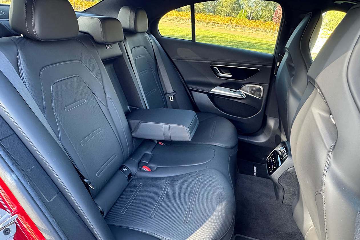 The Mercedes-Benz E200 and E300 both have a claimed combined cycle fuel economy figure of 7.2L/100km, which with a 66-litre tank translates to a theoretical range of 920km. The turbo-petrol plug-in hybrid E300e’s 50-litre tank and 2.5L/100km official consumption figure add up to a theoretical range of around 2000km. The Mercedes-AMG E53 Hybrid 4Matic+’s official fuel consumption figure (1.7L/100km) and 50-litre tank capacity translate to a range approaching 3000km! But to bring that down to earth somewhat, on test CarsGuide saw a (dash indicated) average of 6.4L/100km, which equates to a more realistic, but still lengthy, 780km between fills.