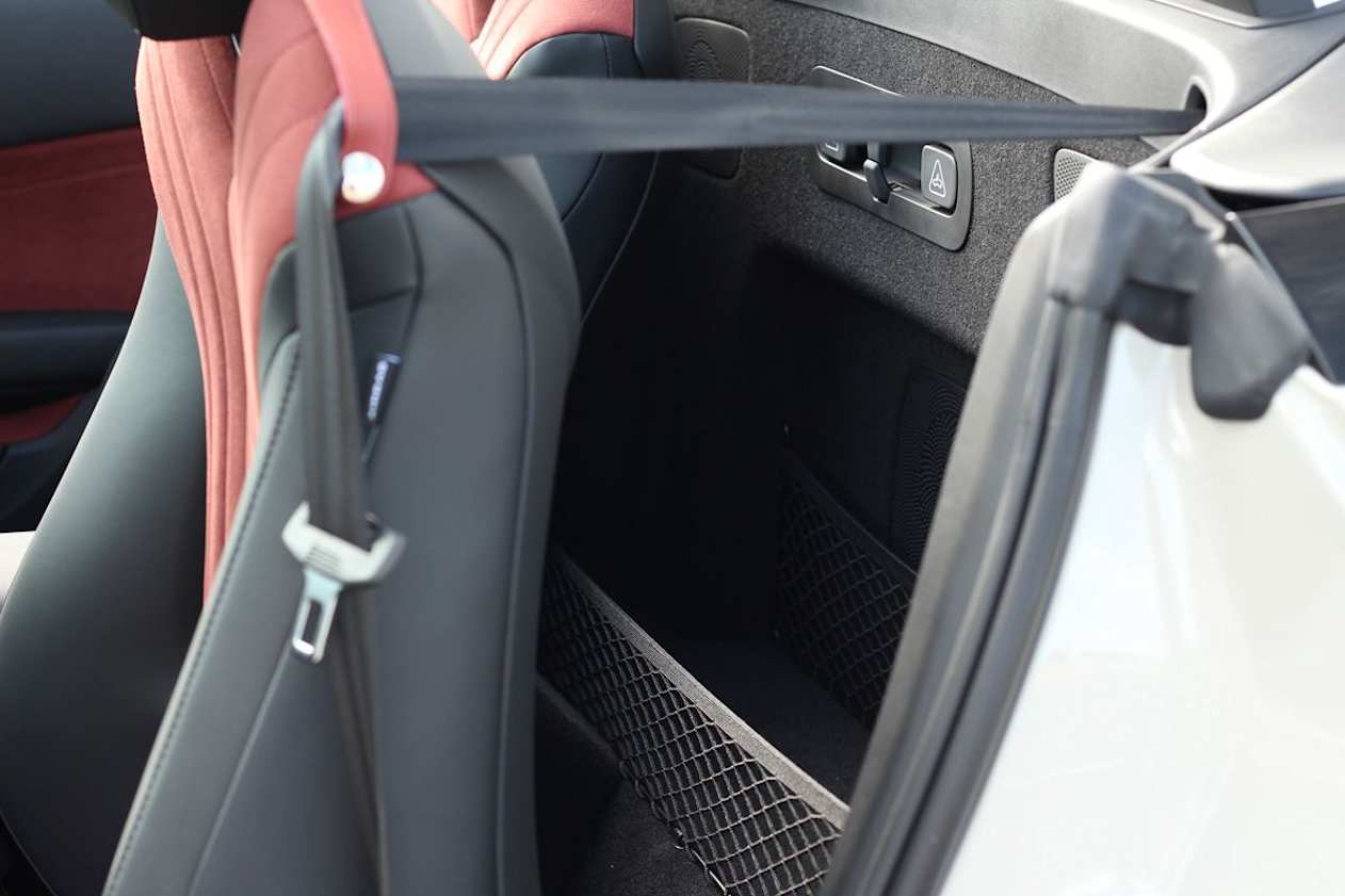 The MG Cyberster has a boot capacity of 249 litres, plus there's some storage space behind the seats in the cabin. There is no front storage (or frunk) as in some electric cars.
