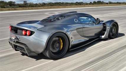Volkswagen brand Bugatti has been duking it out with US brand Hennessey to see who wears the crown as the world's fastest production car. And the Americans may have just swiped it -- although the Guinness world records won't make it official.Hennessey has just unleashed their Venom GT at the Kennedy Space Centre landing tarmac, and -- clocked by leading GPS data-acquisition system maker Racelogic -- hit a speed of 270.49mph (435.31km/h) with director of Miller Motorsport Park, Brian Smith, at the helm.That trumps the Bugatti Veyron Super Sport's previous 269.86mph (434.30km/h) record, which has been sanctioned under Guinness rules. However, while there's been some argy-bargy about the Veyron in production form having a speed limiter -- while the record-setting car did not -- with its record being withdrawn and then reinstated, it seems Hennessey won't be officially handed the crown.In order for the speed to be recognised by Guinness, they require a pass in each direction to counter any advantage from wind. John Hennessey has already told media that he would have been willing to do so, but that NASA -- who operate the Kennedy facility -- would allow only one.And while the Bugatti Veyron is a special build by the Volkswagen Group halo brand, the Venom Gt is essentially built on a modified Lotus Exige chassis, and powered by a twin-turbocharged 7.0-litre V8 delivering 928kW of power at 6600rpm and 1566Nm of torque at 4400rpm to the rear wheels via a Ricardo six-speed manual transmission.Watch the Hennessey Venom GT hit 435.31km/h video on our desktop site.This reporter is on Twitter: @KarlaPincott