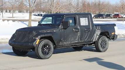 Spy shots have emerged of the upcoming Jeep Wrangler pickup testing on the streets of Michigan.