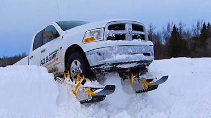 Think your 4WD can already go anywhere? It could easily get a whole lot tougher with these 'lock'n'loaded' tank tracks that will take your ute or suv to a higher level.Designed by US-based engineering firm AD Boivin, the Track N Go system is a quick-fit system that has you simply drive up onto the treads, lock them in place, remove the loading ramps -- and off you go to conquer new rugged territory.The treads are powered by your vehicle's tyres, making the whole operation simple. And while it's not the first tank tread kit we've seen, it's the first on the market to not require a complicated mechanical conversion to get going. However, they're not cheap, priced at more than $25,000 and heavy enough to set you back quite a bit on freight as well.And although we think they'd look the biz on the little Mitsubishi Mirage city hatch currently in the Carsguide test garage, sadly the Track N Go can only be used on V8 and V6 vehicles with a full 4WD two-stage (low and high) transfer case, leaf spring suspension and diff lock on the rear axle. So that means the test Holden Barina is out of the running as well.Watch the turn your car into a tank video on our desktop site.This reporter is on Twitter: @KarlaPincott