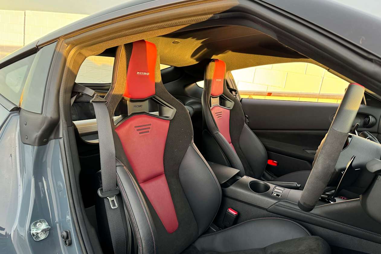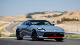 The performance-enhanced Z Nismo, meanwhile, brings a body kit, leather/Alcantara-clad upholstery, Recaro sports bucket seats, more-comprehensive digital instrumentation and steering wheel, additional drive modes and red trim highlights. You’ll also find more power, a faster-shifting automatic transmission, track-focused chassis upgrades, bigger brakes and lighter yet wider alloy wheels.